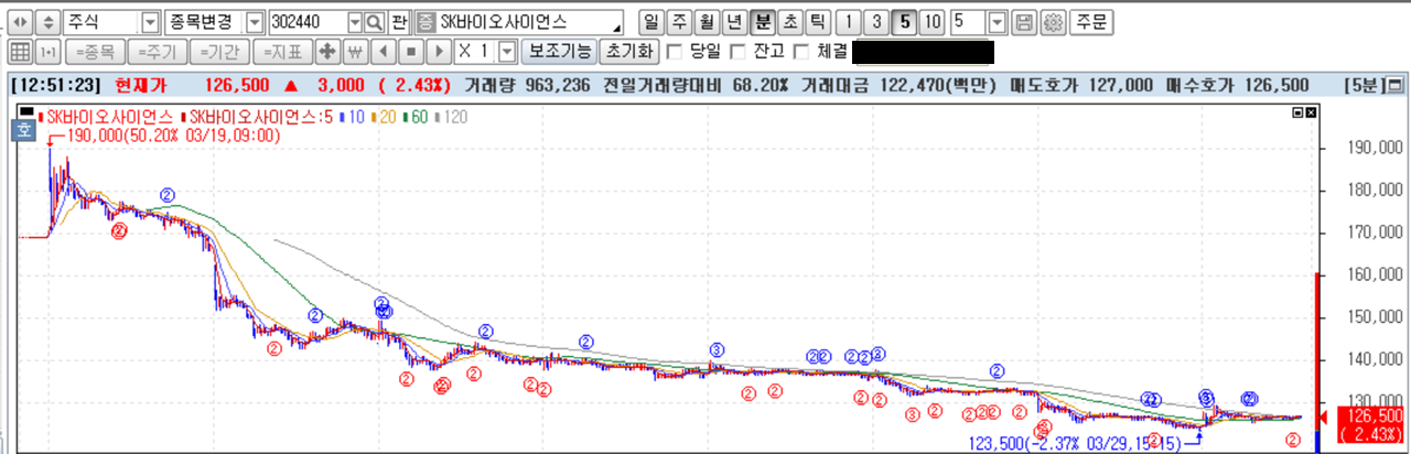 주가가 흘러내리고 있습니다.(3월30일 기준 127,000원 대)