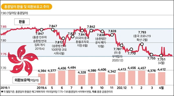 이는 미화 1달러 당 7.75~7.85홍콩 달러 범위 안에서 등락을 허용하는 제도인데요,