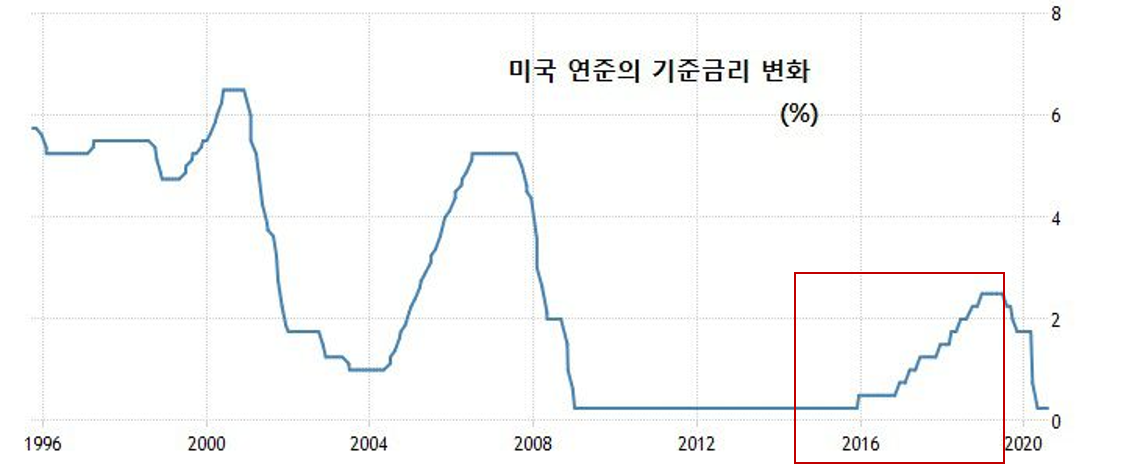 2015년 후반부터 미국이 기준금리를 수차례 인상 시켰던 것을 생각해보면